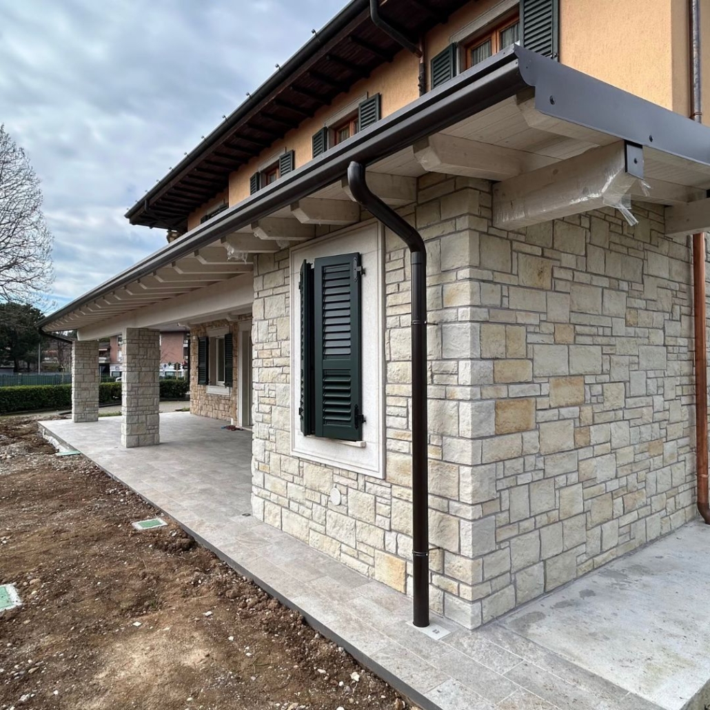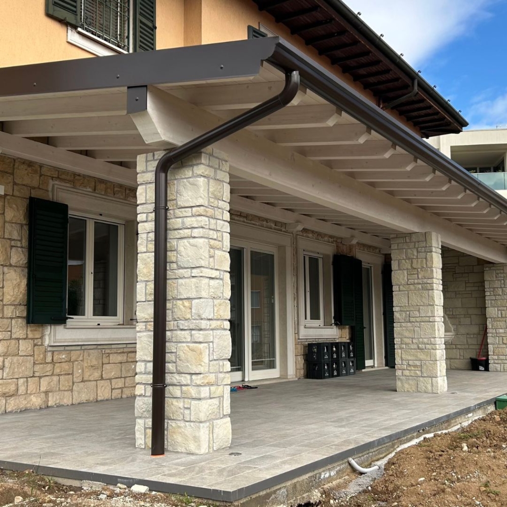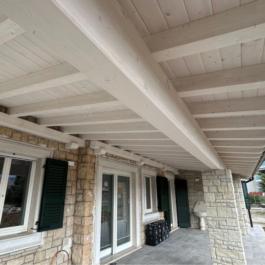 Questo portico rappresenta un perfetto equilibrio tra estetica e funzionalità, esaltando l’architettura e il paesaggio circostante con materiali di alta qualità e uno stile senza tempo.